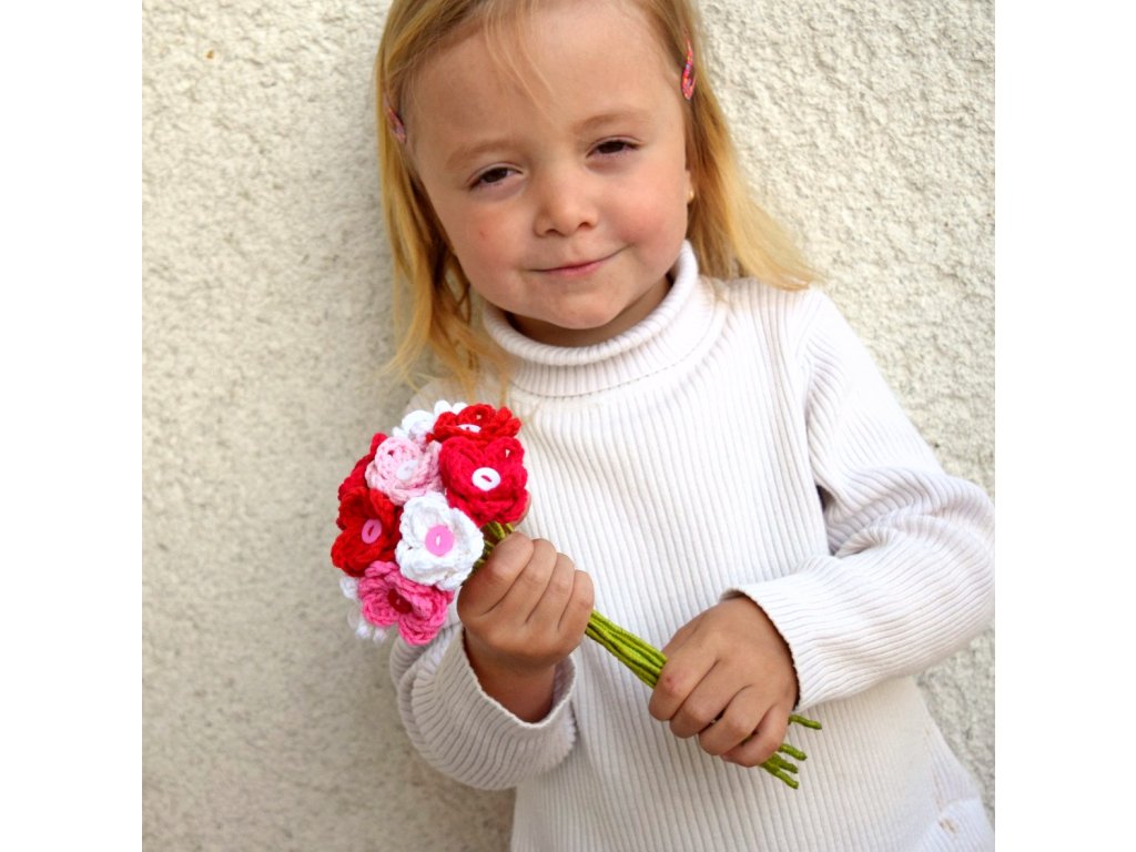Kytice složená z jedenácti ručně háčkovaných kytiček v růžových a červených odstínech jistě potěší každou maminku, babičku, přítelkyni... prostě každou ženu. A navíc dlouho vydrží.