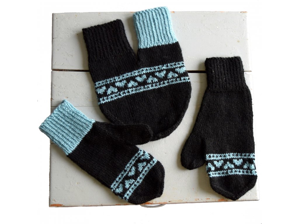 Partnerské rukavice HEARTS sada - černá/světle modrá